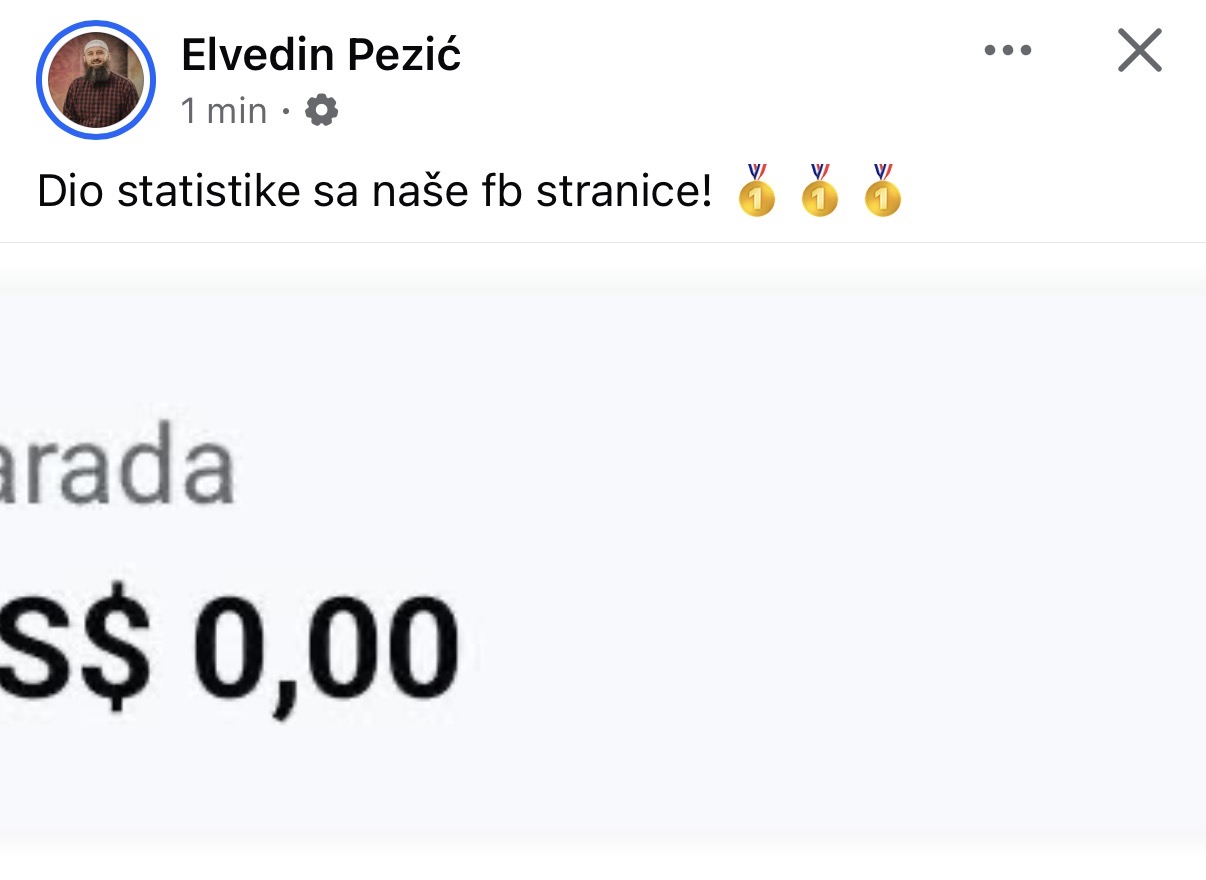Nakon učestalih prozivki i optužbi da putem svoje Facebook stranice ostvaruje ličnu finansijsku korist, Elvedin Pezić je odlučio javno objaviti statistiku i stvarnu zaradu sa Facebook platforme, čime je, prema ocjeni brojnih pratitelja, jasno odgovorio na sve spekulacije, piše 072info.