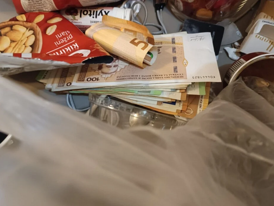 Tokom pretresa policija je pronašla veću količinu praškaste materije i suhe biljne materije, za koje se sumnja da su opojne droge, te veću količinu novca u različitim valutama i apoenima.