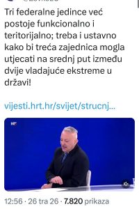 Ne stišavaju se reakcije nakon istupa europarlamentarke Željana Zovko, koja je iznijela stav o unutrašnjem uređenju Bosna i Hercegovina, tvrdeći da tri federalne jedinice u praksi već postoje, kako funkcionalno, tako i teritorijalno.