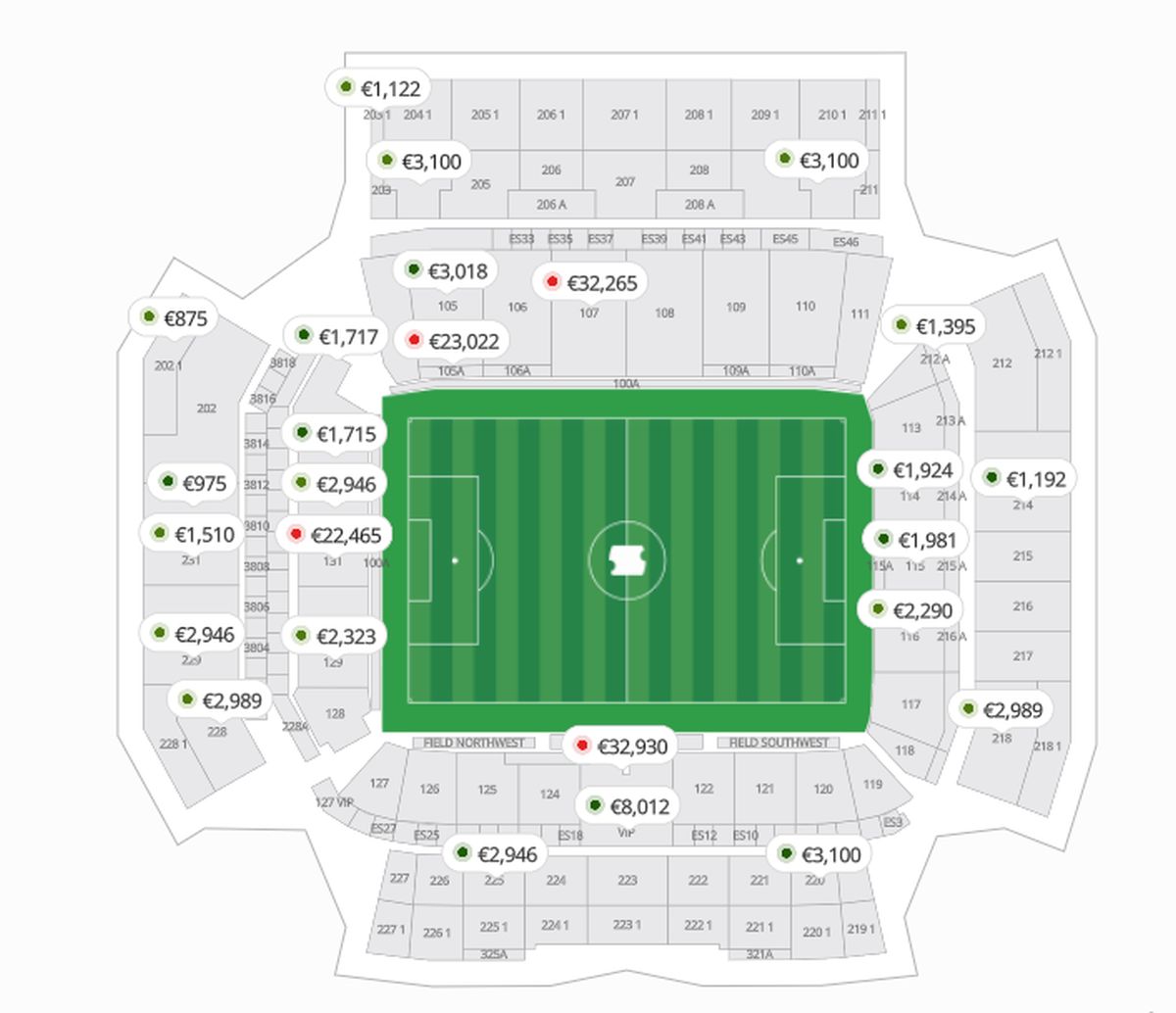 Za duel protiv Švicarske u Los Angelesu cijene su nešto niže. Ulaznice uz teren koštaju nešto više od 9.000 eura, dok se najpovoljnije karte, smještene na najvišim tribinama stadiona SoFi, mogu pronaći po cijeni od 320 eura.