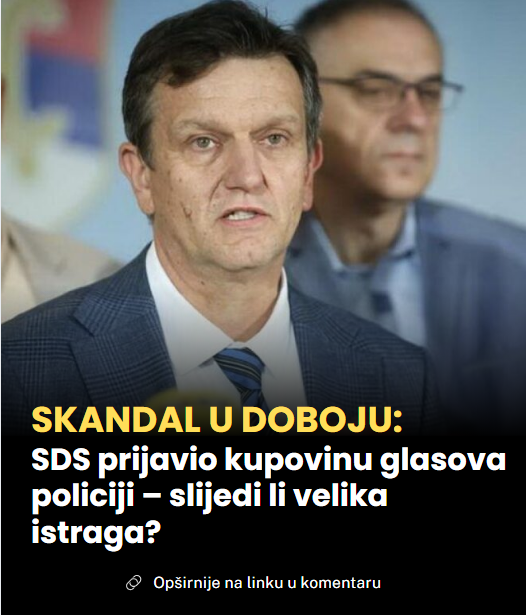 Srpska demokratska stranka (SDS) iz Doboja podnijela je prijavu policiji zbog sumnje na ozbiljne izborne nepravilnosti tokom ponovljenih prijevremenih izbora za predsjednika Republike Srpske. Iz stranke navode da postoji osnovana sumnja na kupovinu glasova i nezakonit utjecaj na birače na više lokacija u ovom gradu.