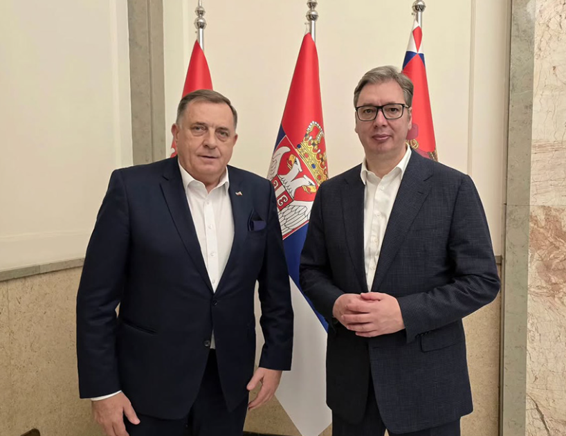 Predsjednik Republike Srbije Aleksandar Vučić sastao se danas u Beogradu s Miloradom Dodikom, liderom Saveza nezavisnih socijaldemokrata (SNSD). Tema razgovora, kako je saopćeno nakon susreta, bila je politička pozicija i uloga srpskog naroda u svjetlu aktuelnih geopolitičkih dešavanja u Evropi i svijetu.