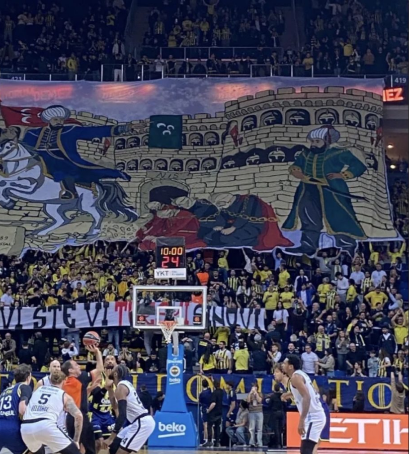 Na početku utakmice navijači turskog kluba podigli su koreografiju praćenu porukom ispisanom na bosanskom jeziku: