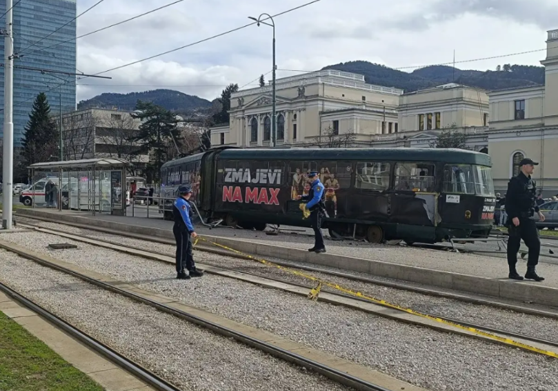 Nesreća se dogodila na raskrsnici kod Zemaljskog muzeja, kada je tramvaj koji je saobraćao iz pravca Željezničke stanice prema Baščaršiji iz nepoznatih razloga iskočio iz šina i završio na kolovozu.