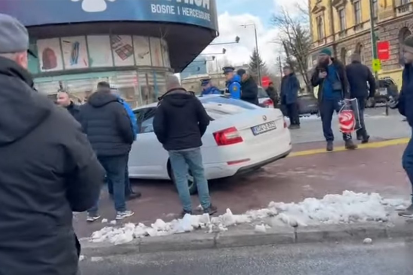 Tokom današnjih protesta u Sarajevo zabilježen je ozbiljan incident koji je izazvao uznemirenost među okupljenim građanima. Prema navodima federalnih medija, situacija je eskalirala u blizini Alipašina džamija, kada je jedan muškarac automobilom krenuo prema demonstrantima.